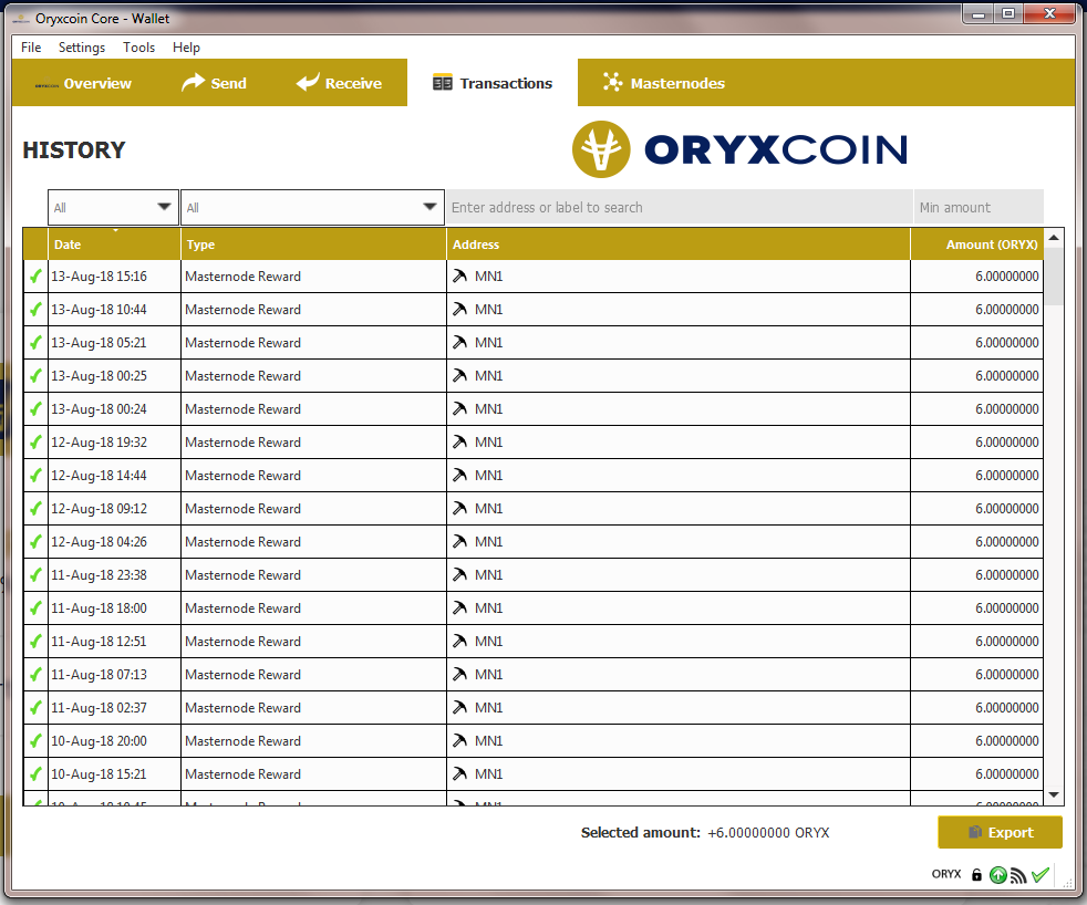 OryxCoin is a utility coin generated from the mining activities with multiple uses and earning methods: investing, staking or masternodes. Nihilo Public for OryxCoin is operated by masternodes which have collateral of 10.000 coins. Every block has a reward of 10 coins and 60% goes to masternode operators. Your masternode needs to be active all the time in order to be in the list of active masternode. The longer your masternode is active the higher the position in top list and the faster you get your rewards because you find blocks faster. Owning a decent number of OryxCoins can allow you to stake them and offer you a reward of 40% from block and 50% return of investment.