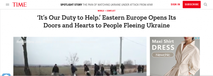 At the Siret border crossing, volunteers in hi-vis vests held up signs: “Offer transport four persons,” “Free legal counselling for asylum procedures;” and simply “help on offer here.” Food trucks handed out steaming cups of coffee and soup. Thick ham and cheese sandwiches wrapped in aluminum foil and bags of groceries were handed to all trundling past. And online, Facebook groups are filled with people offering to meet new arrivals and provide shelter to those with nowhere else to go.