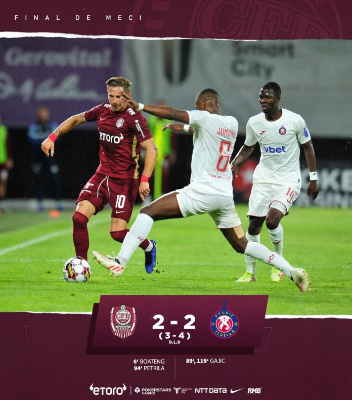 The Armenians were once again forced to fight back after Claudiu Petrila scored in the 94th minute. Zoran Gajic found the net again close to the end of the extra time.