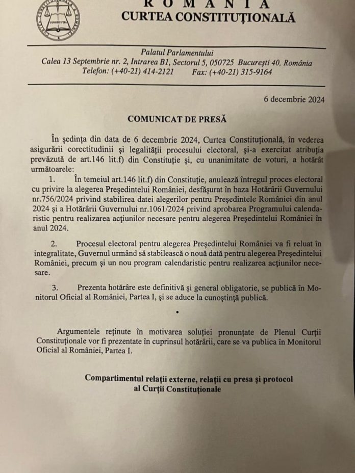UNPRECEDENTED: THE CONSTITUTIONAL COURT ANNULLED THE PRESIDENTIAL ELECTIONS