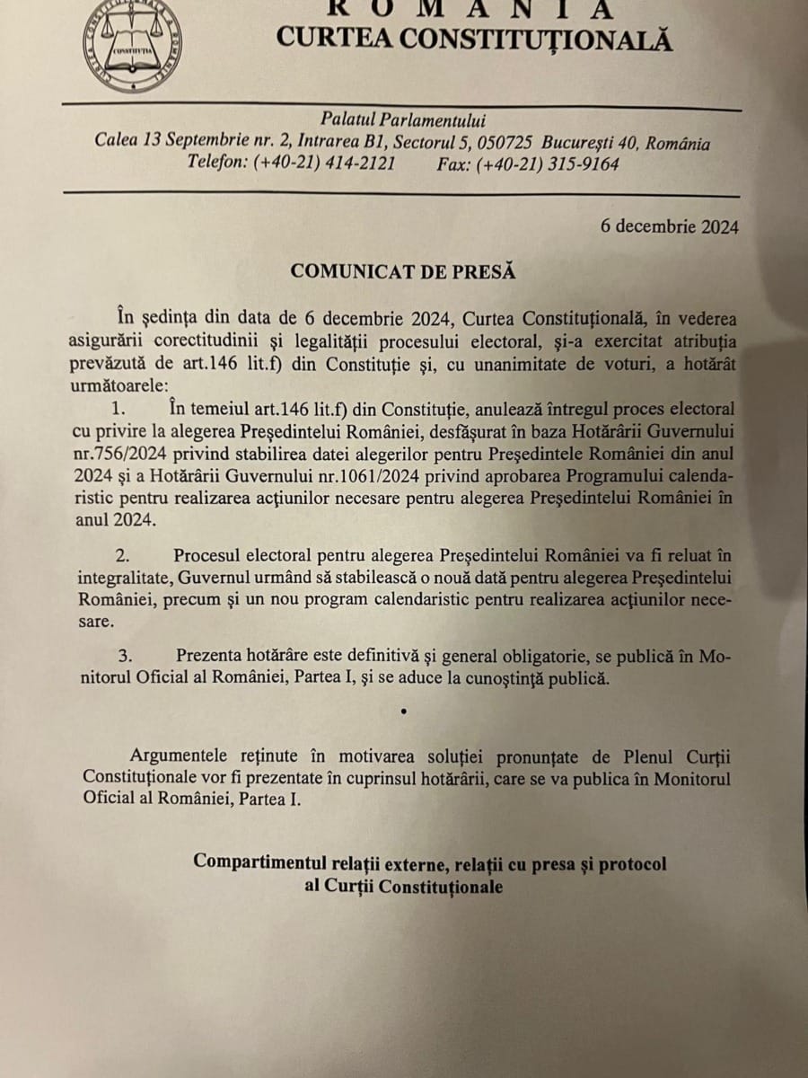 It is an unprecedented decision. Pro-European candidate Elena Lasconi strongly criticized the decision. For his part, the current president of Romania, Klaus Iohannis, said that the new parliament would have to be validated and then vote on a new government. The new government will set the new presidential election timetable. The elections were canceled because of Russian meddling in the elections.